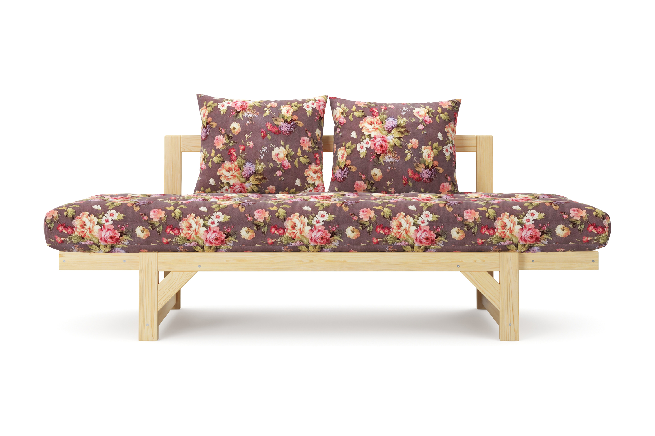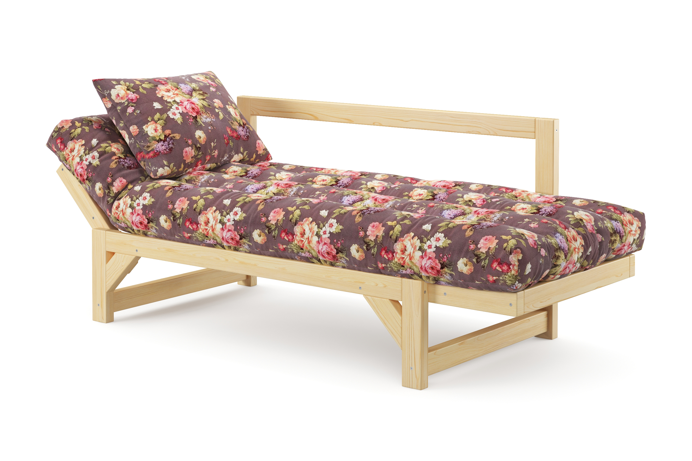 Максимальная нагрузка — 220 кг. Ширина деревянной спинки 130 см. Приспинные подушки, представленные на фото, входят в комплект. Декоративные приобретаются отдельно. Диван продается без лакокрасочного покрытия, под самостоятельную покраску. Высота сиденья без матраса - 31 см, с матрасом 46 см.