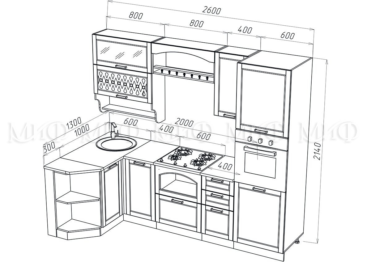 • Глубина шкафов: Верхние 300 мм/Нижние 600 мм/Глубина столешницы 600 мм