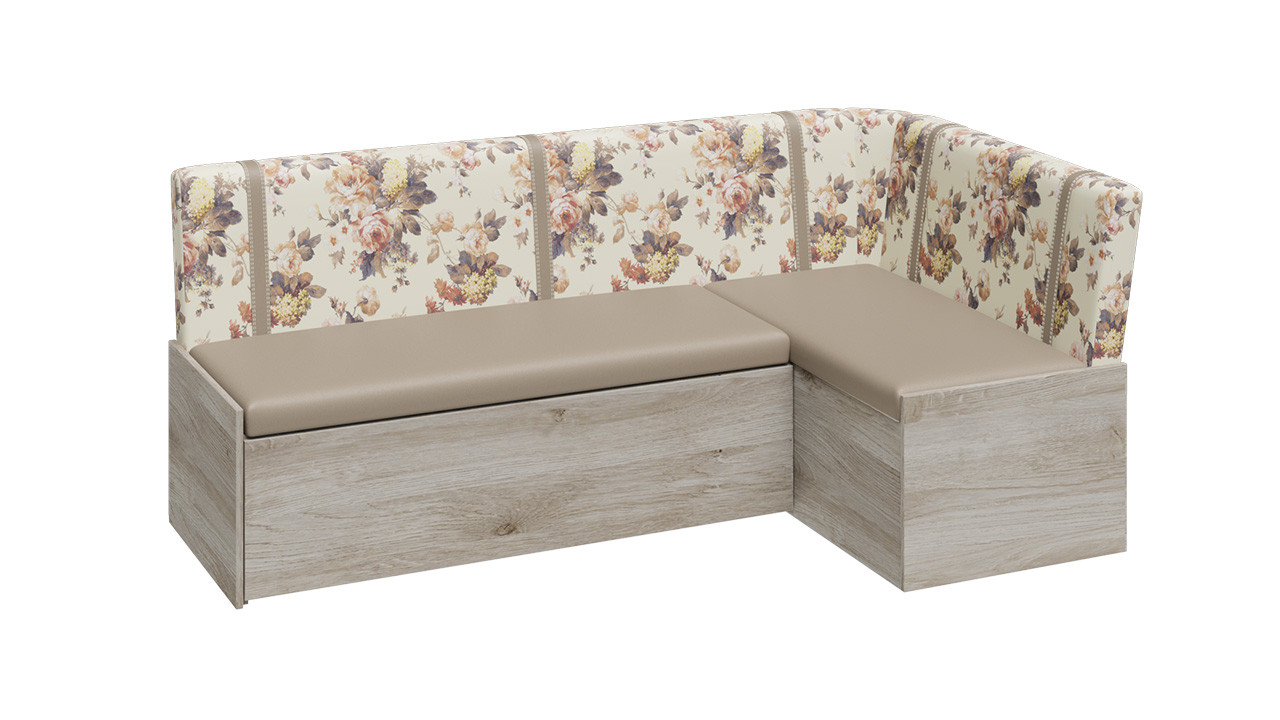 —Скамья угловая со спальным местом «Париж» (Баттл Рок/ Цветы бежевые)